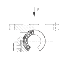 - 在主載荷方向的基本額定載荷; 基本額定載荷僅適用于淬硬(670+170 HV)及磨削過的作為滾道的軸 根據 ISO/CD 14 728-1 的基本額定載荷(最大值)