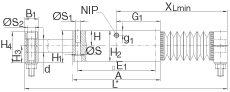 - 只適用于如下標準。 對不是標準產品,如下: L tot = A + 2 x B1 + 總行程 以及 Xmin = (A/2) + B1 (GH = 總行程)