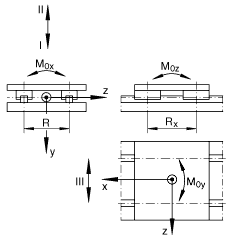 - 基本額定載荷:載荷方向 Z III: 當(dāng)載荷均勻分布在四個直線球軸承上的基本額定載荷。 基本載荷和扭矩不能同時增加。