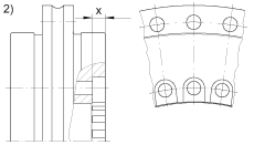 - L-形圈的擴孔螺栓對著軸承孔,見圖 2.) 軸承內徑在 X 區域沒有支撐。